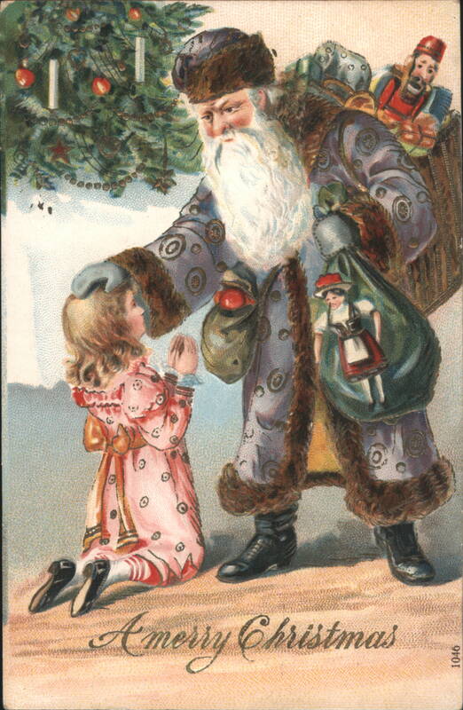 Santa Claus and Girl with Christmas Tree, "A merry Christmas"