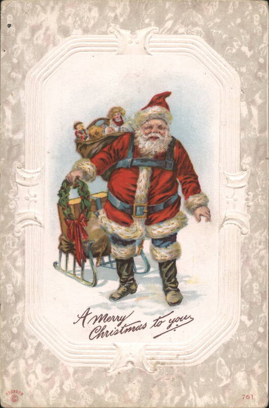 Santa Claus with Sleigh, Sack of Toys, and Christmas Wreath, 1911