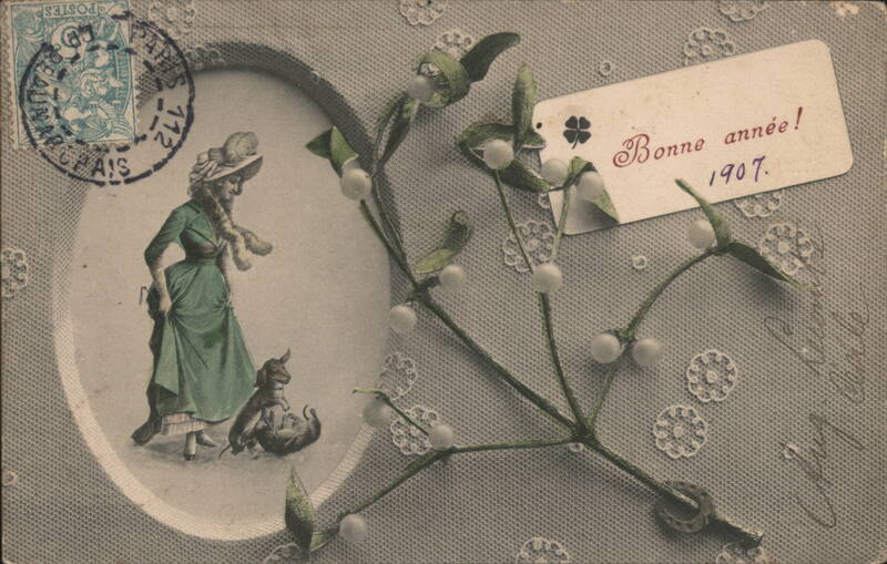 New Year's Greeting with Woman, Dog, and Mistletoe, Paris 1907