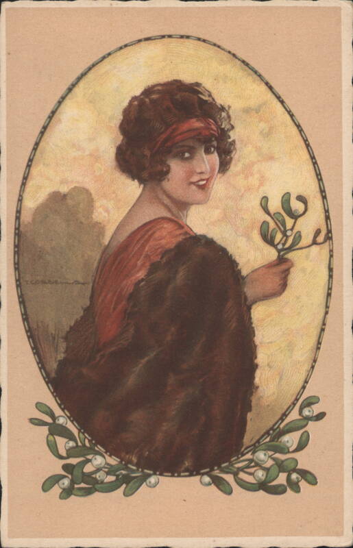 Flapper Woman in Fur with Mistletoe by T. Corella