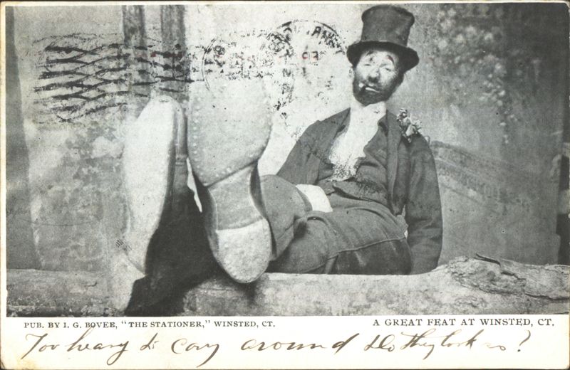Man in Top Hat & Painted Face, Feet Up - A Great Feat