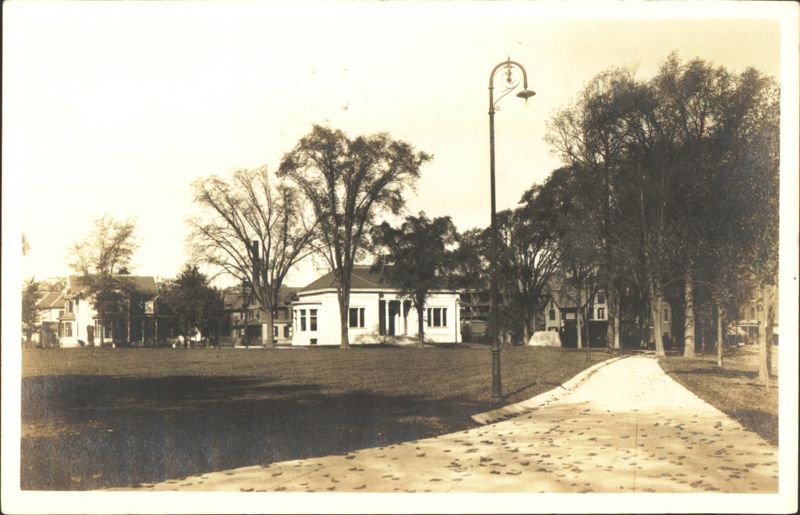 Torrington Park with Building and Lamppost