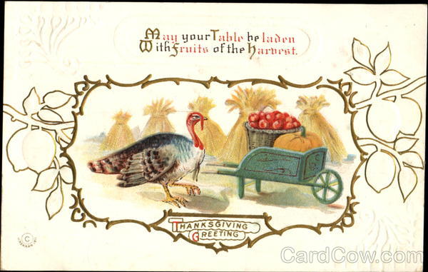 Front: May your Table he laden With Fruits of the harvest. THANKSGIVING GREETING Back: M.132. This side for the Address only.