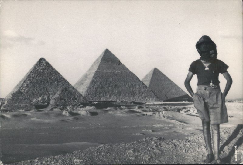 Pyramids of Giza, Egypt with Figure in Desert Landscape