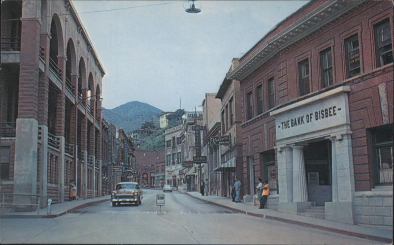 Looking up Main Street toward Castle Rock. The streets in Bisbee are so steep that there are no mailmen - and no first class post office.