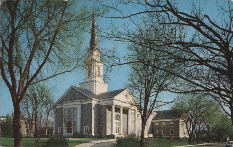 A colonial Church edifice, consecrated on April 20, 1958, replaces the earlier one which burned January 20, 1954. Allison United Methodist Church, a stately sanctuary of Pennsylvania limestone, also serves as Dickinson College Chapel. |