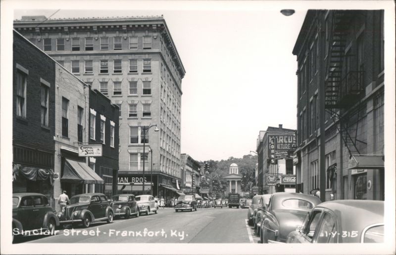 Sinclair Street, busy downtown view with vintage cars and storefronts