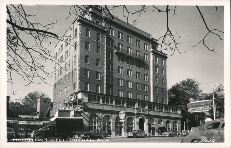 Houston Hotel, Dothan, Alabama with Street Scene and Vintage Cars
