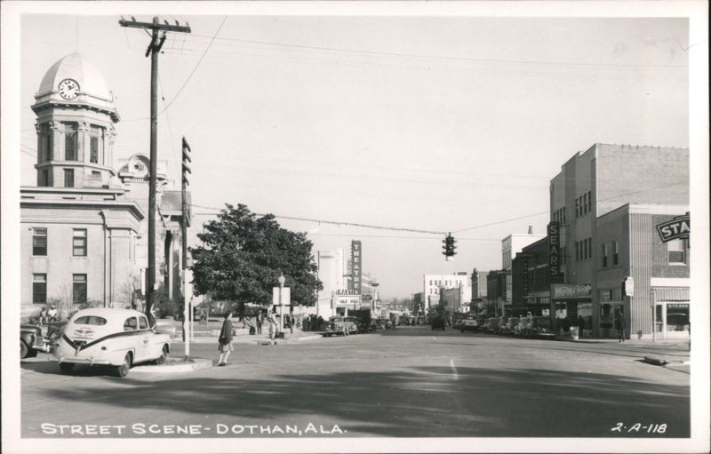 Dothan, AL Street Scene with Clock Tower and Sears