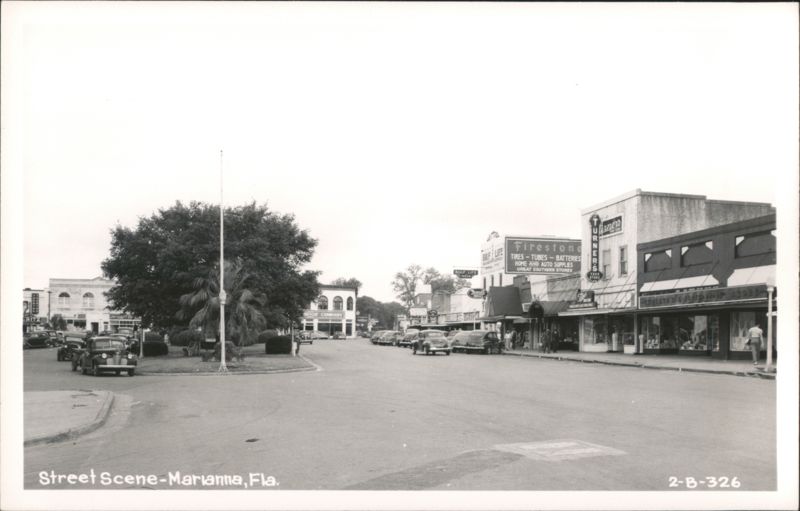 Street Scene with Firestone, Turner's, and Chevrolet Company, Marianna