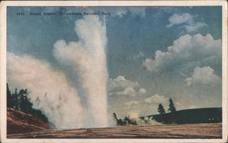 Nature has lavished her gifts on the region of the Yellowstone—all under the guard of mountain sentinels, around whose lofty heads group every form of cloud castle that vagrant winds can build. But of all the wonders that God in His mysterious way has there worked to perform, none is so strange, so startling as the geysers. Grand Geyser, one of the famous active geysers in Upper Geyser Basin, plays every eighteen to twenty days, 250 feet, but only twenty minutes to a half hour. |