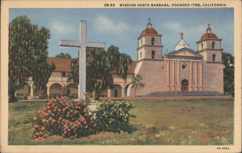 | The Old Mission, tenth of the California missions. The only mission in California of which the Franciscan order has never relinquished control. Founded December 4th, 1786. Since its dedication the church has been used continuously for religious observances. |