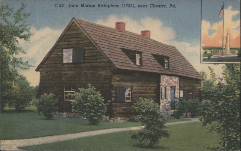 John Morton, a member of Congress from Pennsylvania and signer of the Declaration of Independence, was born in this house 1725-died 1777. He is buried in Cemetery at foot of Third Street, Chester, Pa.