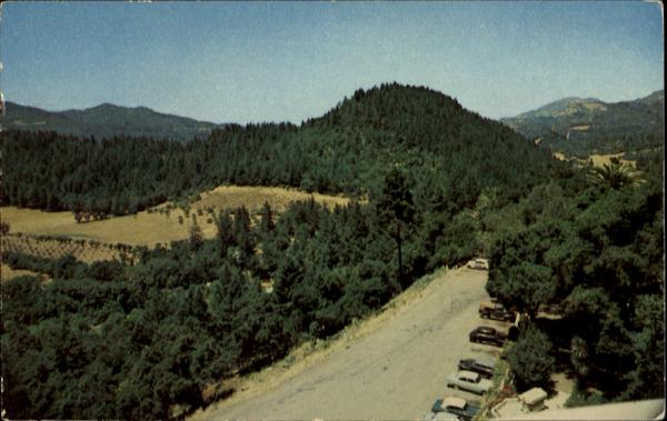 Panorama from roof garden showing Sugar Loaf and Mt. St. Helena - 60 miles north of the Oakland San Francisco Bay area