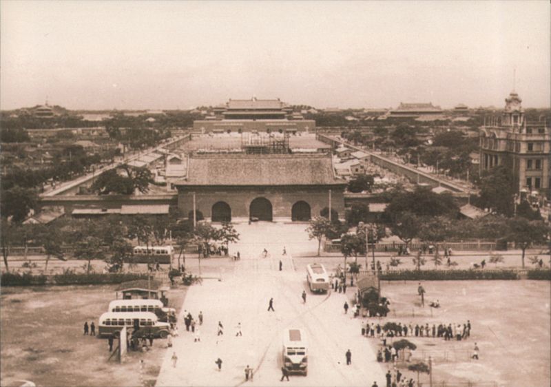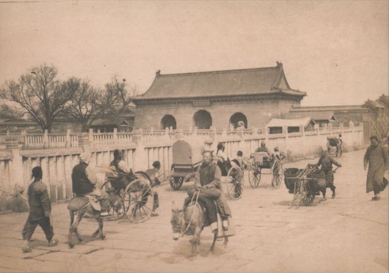 The White Pagoda on Jade Islet, built in 1651 during the Qing Dynasty, reflected in the lake at Beihai Park. New World Amusement Plaza, Beijing, 1914 New World Amusement Plaza was constructed in 1914 on the Xiangchang Road. This five-story circular plaza had been the largest new-style construction and the most popular recreational center in Beijing until its shutdown in 1920s after the fire. Gate of Earthly Peace Outer Street, Beijing, Qing Dynasty Lying on the north-south central axis in Beijing, the Gate of Earthly Peace Outer Street is home to a great number of historic sites and has been a well-known business quarter since Yuan Dynasty. South Facing Gate from East, Beijing, Republic of China A view of South Facing Gate from the east in the Republic of China Era, with Eastern and Western South Facing Gate Stations, the South Facing Gate Station area used to be Beijing's major gateway to the outside world, which had contributed to the city's commercial development and prosperity in a significant way. Qianmen Railway Station, Beijing, China, Republic of China Era The former Eastern South Facing Gate Station of Beijing-Shenyang Railway. Built in 1901, it was the largest railway station in Beijing from Late Qing to the foundation of P.R.C. Zhengyangmen Gate, Tiananmen Square, Beijing A view of the Chessgrid Street from the South Facing Gate: south of the Gate of Supreme Harmony used to be the Great Qing Gate. Between the two gates lay a T-shape square which was flanked by high palace walls. Outside these walls were various central governmental institutions. Great Qing Gate, Beijing - Street Scene with Carts The Great Qing Gate, formerly known as the Great Ming Gate, with Chessgrid Street and the Thousand-step Corridor. Forbidden City Panoramic View, Republic of China Era A panoramic view of the Forbidden City in the Republic of China Era, as the best preserved and the largest ancient architectural complex in China, the Forbidden City was built from 1406 to 1420, and experienced multiple extensions and renovations during Ming and Qing Dynasties. Chienmen Street, Peking with Gate Qianmen Street in the Republic of China Era, as the former Lizheng Street in the Yuan Dynasty. Qianmen Street was renamed South Facing Gate Street in Ming Dynasty, but was commonly referred to as Qianmen Street. Eastern entrance of Xiaojiaominxiang Lane, Beijing, 1930 Eastern entrance of Xiaojiaominxiang Lane in 1930. Xiaojiaominxiang Lane had been Beijing's financial street in Late Qing and the Republic of China Era. Summer Palace, Lake View with Pagoda and Archway Summer Palace was the summer resort where the Qing emperors attended to the political affairs, expanded on the base of Ming's imperial gardens in the fifteenth year of Qing's Qianlong Era (1860). Historic Bell Tower, China The Bell Tower, originally constructed in the Yuan Dynasty, was used by Ming and Qing governments to ring twice daily for timekeeping until it fell out of use in 1924 due to the popularization of watches and bells. Qianmen Five Archways & Zhengyangmen Gate Tower Qianmen Five Archways in the Republic of China Era. Built in Zhengtong Era in Ming Dynasty. Five Archways was the official wooden archway at that time due to Qianmen's status as the frontmost gate of the nine gates and the 'national gate'. Steam Train at Xibianmen Railway Station, Beijing Train leaving the Western Informal Gate loop railway line of Beijing, which was finished in 1916 with a total length of fifteen kilometers, passing six railway stations including Kizhimen Gate, Deshengmen Gate, Gate of Stability, Dongzhimen Gate, Sun Facing Gate and Eastern Informal Gate Railway Stations. Hall of Prayer for Good Harvests, Temple of Heaven The Hall of Prayer for Good Harvest was firstly named the Hall of Great Sacrifice in the eighteenth year of Ming's Yongle Era (1420) and was renamed the Hall of Prayer for Good Harvest by Qing's Emperor Qianlong in 1753. Gate of Heavenly Peace from Zhongshan Park, Snow Zhongshan Park used to serve as the Altar of Land and Grain for imperial sacrificial rituals during Ming and Qing Dynasties. |
