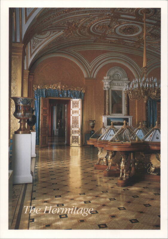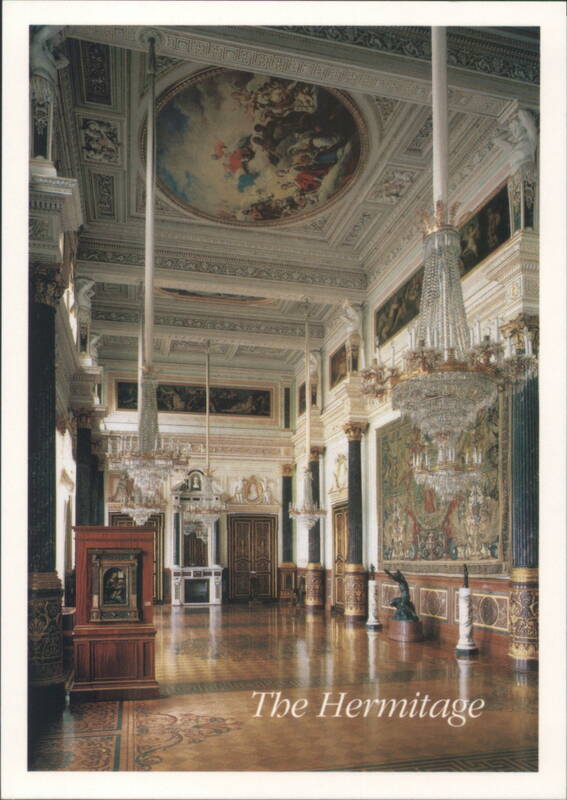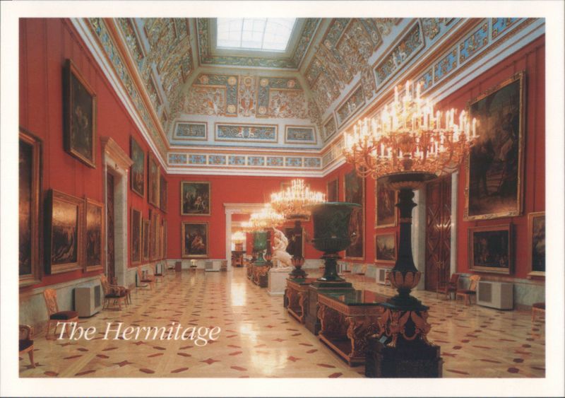 The Hermitage Main (Jordan) Staircase, Rastrelli, St. Petersburg The Hermitage, Leonardo da Vinci Room, St. Petersburg Grand hall designed by architect Andrei Stakenscheider in the 1850s, featuring a painted ceiling, chandeliers, columns, and tapestries. The Hermitage, White Hall, St. Petersburg, Russia Interior view of the White Hall, designed by Architect Alexander Briullov in the late 1830s - early 1840s, featuring a large golden chandelier and ornate decorations. The Hermitage Golden Drawing Room, St. Petersburg Ornate interior designed by architect Alexander Briullov, late 1830s-early 1840s. The Hermitage Boudoir, Red & Gold Interior Lavish interior of The Boudoir, designed by Architect Alexander Briullov (late 1830s - early 1840s) and redesigned by Harald Bosse (1853). The Hermitage, Large Italian Skylight Hall Grand hall with red walls, numerous paintings, ornate chandeliers, and a patterned floor. Designed by architect Leo von Klenze in the 1840s. The Hermitage, Gallery of Ancient Painting, St. Petersburg Interior view of the gallery designed by Architect Leo von Klenze in the 1840s, featuring sculptures and paintings. The Hermitage, Knight Hall with Armored Figures The Knight Hall (Rittersaal) designed by architect Leo von Klenze in the 1840s, featuring armored figures on horseback. The Hermitage, The Malachite Room Designed by Architect Alexander Briullov in the late 1830s - early 1840s. The Hermitage Raphael Loggias, St. Petersburg Long, ornate hallway with arches, paintings, and sculptures, designed by architect Giacomo Quarenghi between 1783 and 1792. The Hermitage, Jupiter Room, St. Petersburg, Russia Hermitage Theatre Interior, St. Petersburg The theater, designed by architect Giacomo Quarenghi, was completed in the late 1780s. It features ornate columns, balconies, and a stage with a large painting. The Hermitage Pavilion Hall, Saint Petersburg Grand interior view of the Pavilion Hall with chandeliers, columns, and a central glass pavilion. Designed by Architect Andrei Stakenschneider, 1850-1858. The Hermitage, 1812 War Gallery, St. Petersburg Interior view of the 1812 War Gallery, designed by Architect Carlo Rossi and restored after the 1837 fire by Vasily Stasov. St. George Hall, Great Throne Room, The Hermitage Designed by Architect Giacomo Quarenghi in 1795, restored and redesigned by Vasily Stasov after the 1837 fire. |