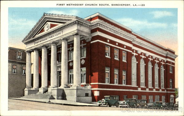 Front: FIRST METHODIST CHURCH SOUTH, SHREVEPORT, LA.–28 TCHURCH SOUTH Back: 26579N TO ANYWHERE IN U, S, VIA AIRMAIL Or MADE IN U.S.A. BY E. G. KROPP CO., MILWAUKEE