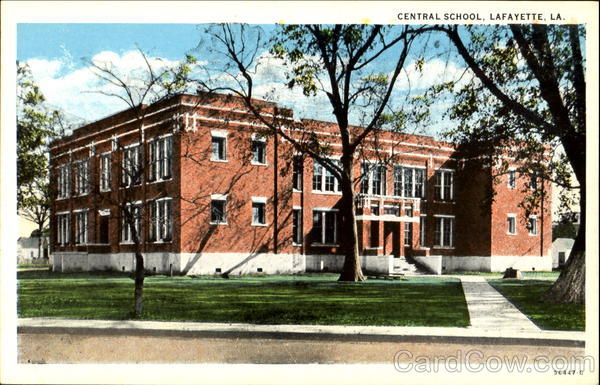 Front: CENTRAL SCHOOL, LAFAYETTE, LA. 11 56 447-C Back: PUBLISHED BY MOORE'S STUDIO & GIFT SHOP, LAFAYETTE, LA C. T. AMERICAN ART COLORED TO