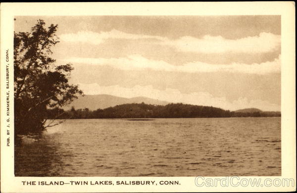 Front: THE ISLAND-TWIN LAKES, SALISBURY, CONN. PUB. BY J. G. KIMMERLE, SALISBURY, CONN. Back: A. HESS CO., New York City, Publishers