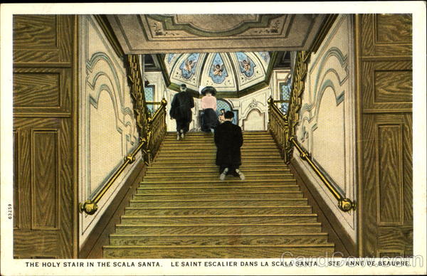 Front: THE HOLY STAIR IN THE SCALA SANTA. LE SAINT ESCALIER DANS LA SCALA SANTA. STE. ANNE DE BEAUPRE. 63259 Back: AMERICAN ART COLORED SI WIC