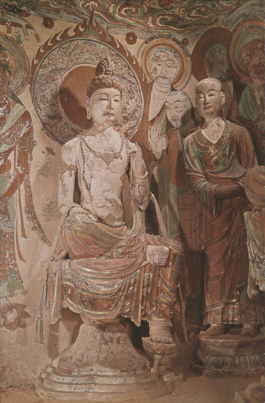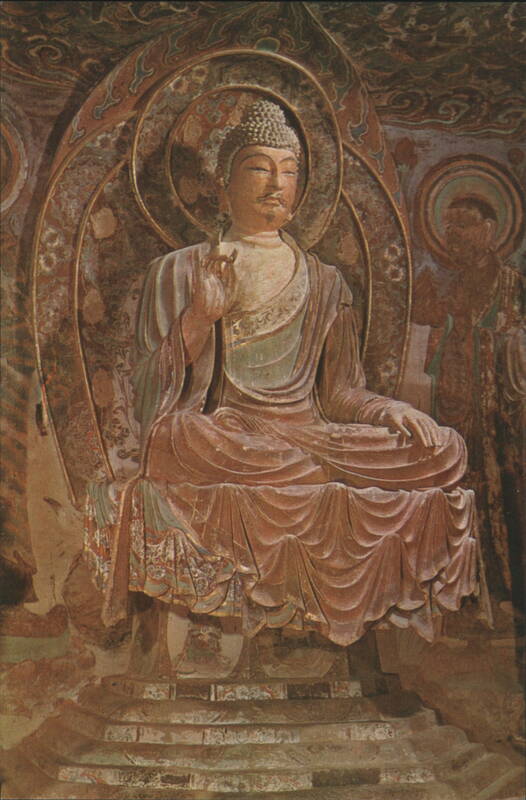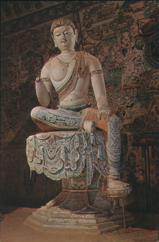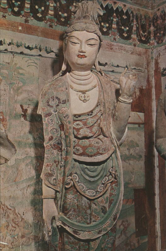 Great Buddha in Cave 130, Tang Dynasty (618-907 A.D.) Bodhisattva & Ananda, Cave 328, Tang Dynasty The image features a seated Bodhisattva statue, adorned with jewelry and robes, accompanied by Ananda and other figures. The scene is set within a cave, with painted murals visible on the walls, dating to the Tang Dynasty (618-907 A.D.). Worshipping Bodhisattva, Cave 328, Tang Dynasty Sakyamuni Buddha, Cave 328, Tang Dynasty (618-907 A.D.) Bodhisattva Statue, Cave 194, Tang Dynasty (618-907 A.D.) Buddha in Cave 158, Tang Dynasty Close-up of a serene Buddha statue with closed eyes, intricate headdress, and decorative patterns on the surrounding structure, dating from the Tang Dynasty (618-907 A.D.). Bodhisattva in Cave 159, Tang Dynasty (618-907 A.D.) Lokapala in Cave 194, Tang Dynasty (618-907 A.D.) Bodhisattva in Cave 194, Tang Dynasty Bodhisattva in Cave 196, Tang Dynasty (618-907 A.D.) Guardian in Cave 55, Northern Sung Dynasty (960-1036 A.D.) |