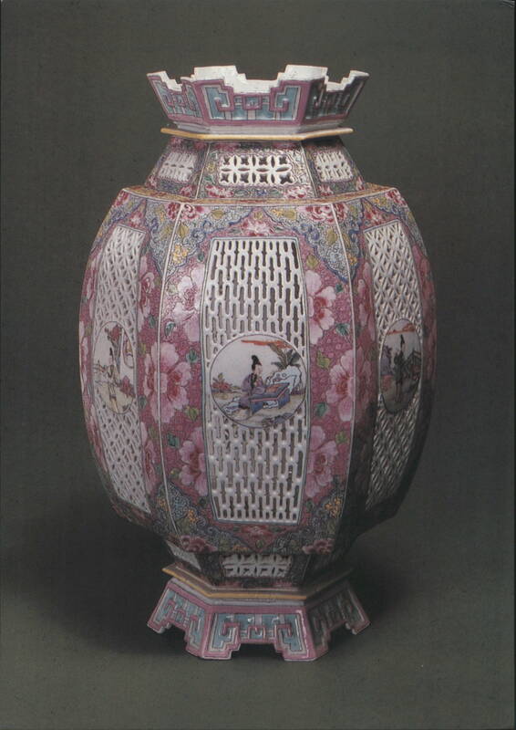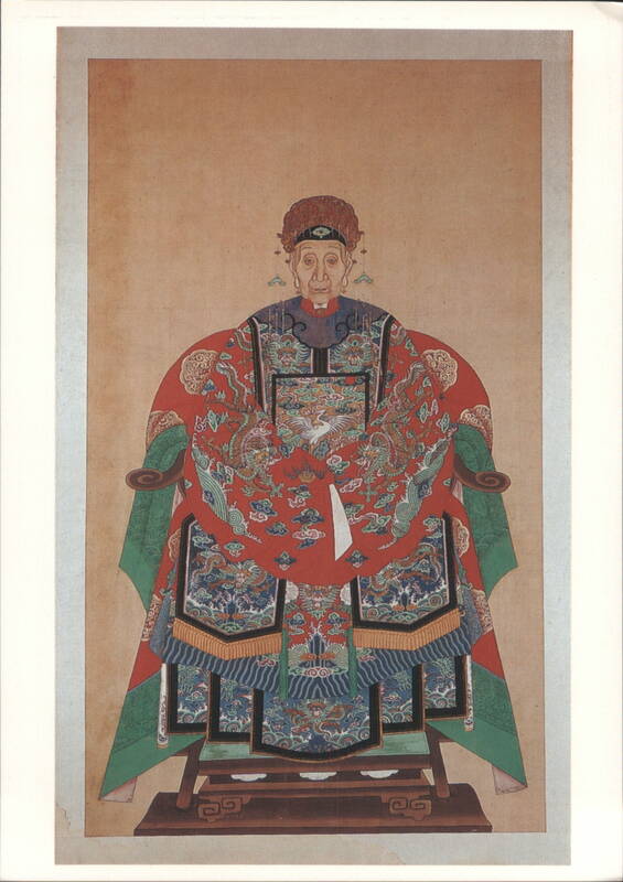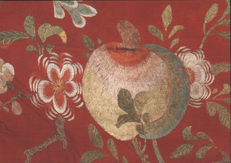 Chinese Plate, Famille Rose Enamel, Yongzheng Period Plate. Painted in famille rose enamel colours. 1723-1735. Yongzheng period. Ancestor Portrait of a Chinese Woman, Watercolour on Silk Head of a horse, jade, Han dynasty Floral Embroidery Detail, Woman's Robe, Qing Dynasty Embroidery on gauze-banded plain weave silk, late 17th-early 18th century, early Qing dynasty. Qing Dynasty Woman's Robe Embroidery, 17th-18th Century Porcelain Lantern, Enamel Decoration, Qing Dynasty Lantern, porcelain decorated in enamels, 1725-1750, Qing dynasty. Outer Coat, Embroidery on satin weave silk, 19th Century From Chinese Turkestan. Duck, Painted Earthenware, Northern Wei Dynasty Panel of Painted Silk, Late 18th Century Chinoiserie Wallpaper Panel, Cranes, Flowers, Potted Plant Detail of a decorative wallpaper panel, dating from approximately 1810-1830, featuring lush trees with red berries and pink flowers, two cranes, and a smaller bird. A large decorative pot containing a bonsai-like plant is prominently displayed on a red stand. |