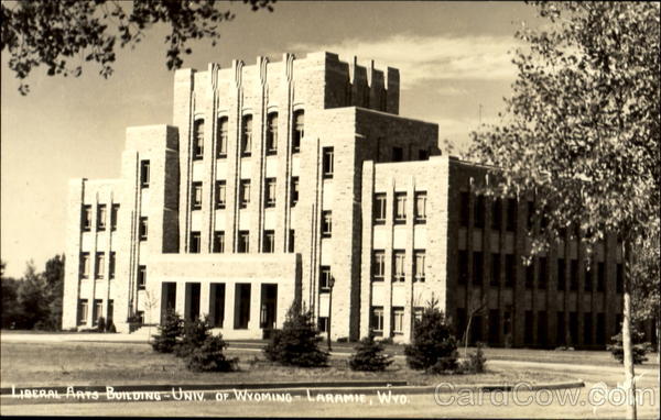Front: LIBERAL ARTS BUILDING-UNIV. OF WYOMING LARAMIE WYD Back: The class room where ne go lince daily ждо top flow here 12