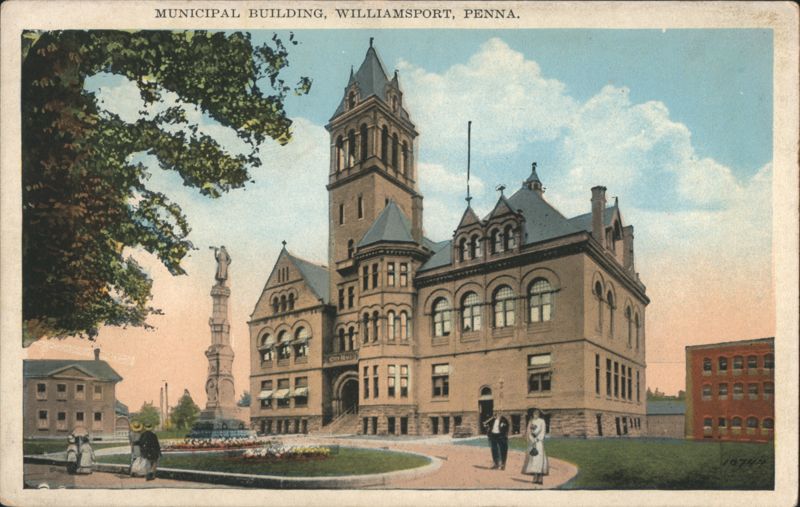 This beautiful building occupies one full city block in the business section. Williamsport has a commission form of government. This fine building houses all the activities of the city. Built 1900 A. D.