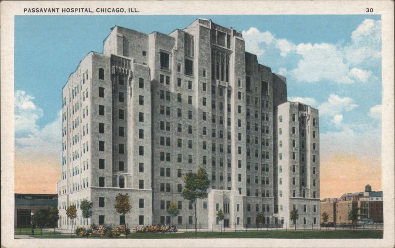 | As the medical clinic for the college of medicine, Northwestern University, Passavant Hospital has become famous. Thoroughly modern, its rooms are decorated in soft shades of green and rose colors instead of the customary hospital whiteness. |