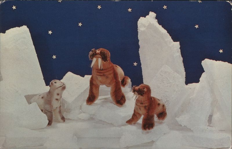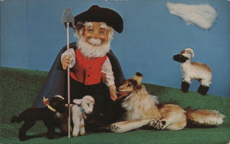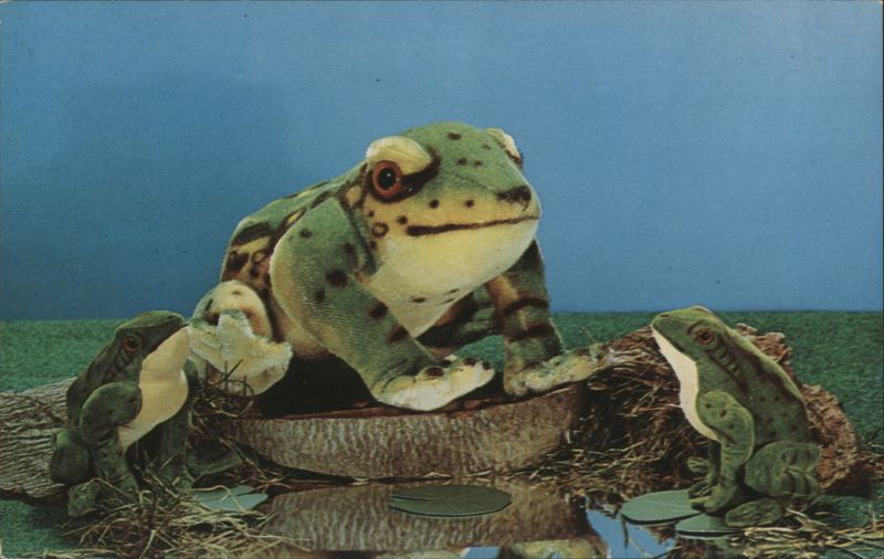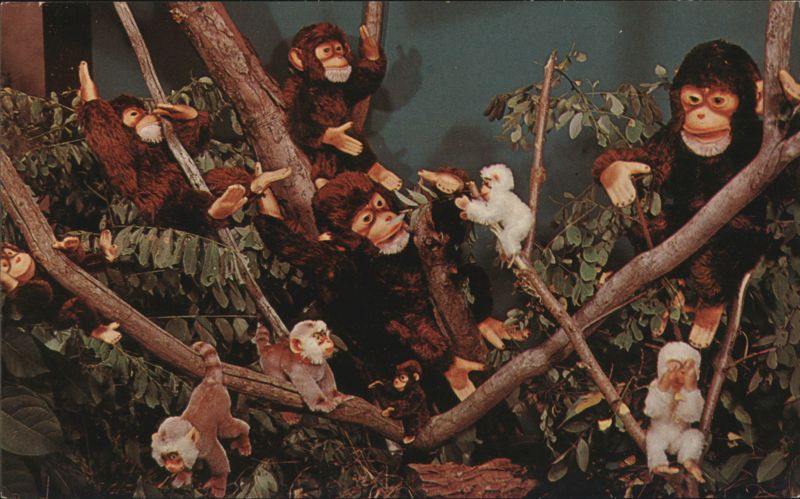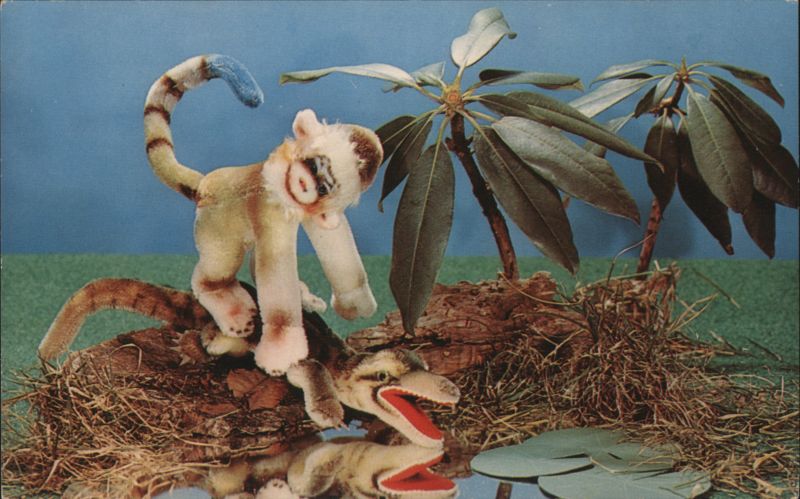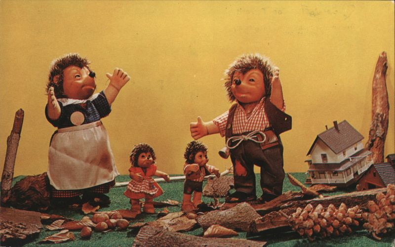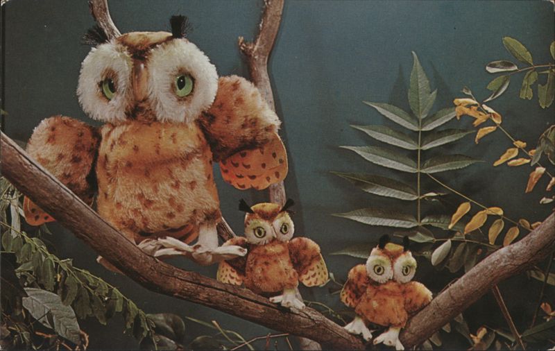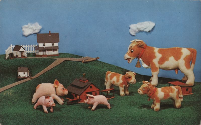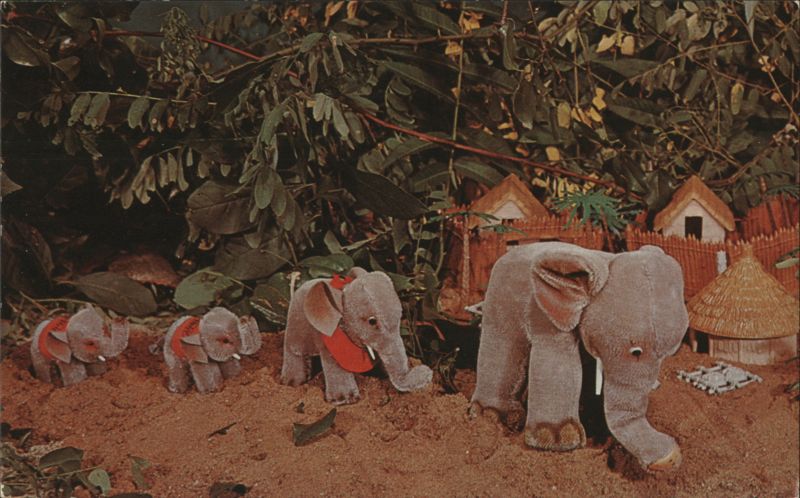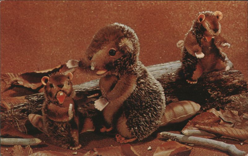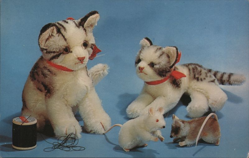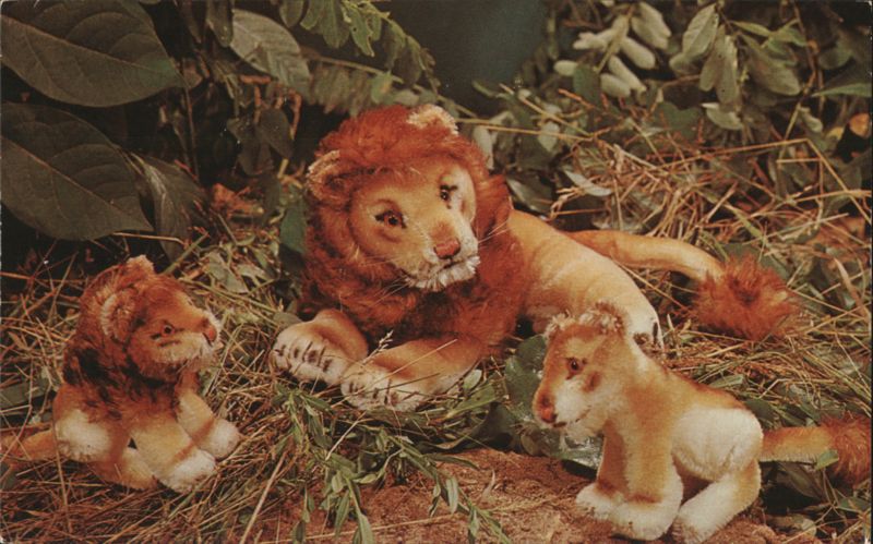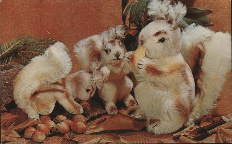 Steiff Zoo Favorites Frogs Grandpappy & Froggies Pond Steiff Zoo Favorites Three Busy Squirrels Preparing Winter Three busy Squirrels at work preparing for a long winter. Steiff Susi Cat, Fiffy Cat & Mice at Play Zoo Favorites Mice at play, while Susi Cat and Fiffy Cat look on with amusement and gleam in their eye. Steiff Zoo Favorites: Mungo the Jungle Wizard on Gaty Steiff Shepherd, Collie, Lambs & 'Snucki' Mountain Ram The Shepherd and his collie watch over the flock with 'Snucki' the mountain ram on hillside beyond. Steiff Zoo Favorites: Brosus, Dinos, Tysus Prehistoric Dinosaurs "Brosus", "Dinos", and "Tysus" who lived during the prehistoric period of earth history about 140 million years ago, rendezvous at their favorite hunting grounds. Wittie the Owl and her two little 'Witties' in forest Three Steiff stuffed owl toys, a large one and two smaller ones, perched on tree branches amidst green and yellow foliage. Steiff Dog Show Blue Ribbon Winners Stuffed Animals Display of six Steiff stuffed dogs: Dolly, Snobby, Basset, Cockie, Susi, and Peky, identified as proud blue ribbon winners. Steiff Zoo Favorites: Robbie the Seal & Family Under the starlit skies in the land of the Midnight Sun 'Robbie' the seal and mama and papa 'Paddy' rest on glistening ice cakes after catching their supper of fish in the deep blue water in the ice flow. Steiff Zoo Favorites: Jumbo Elephant Family in Jungle Village Jumbo the elephant and his family of three smaller elephants stroll along the outskirts of a native village with huts, set against a backdrop of lush jungle foliage. Steiff Zoo Favorites Chimpanzee Jacko & Pavian Coco Chimpanzee "Jacko", and Pavian "Coco" and their friends having a barrel of fun in their native playland. Santa Claus Reindeer House Christmas Tree Steiff Zoo 'Twas the night before Christmas Steiff Zoo Favorites: Old Rivals Meet, Goat vs Donkey Football Steiff Zoo Favorites: Bessie & Calves, Jolanthe & Family on Farm Madame, 'Snobby' & 'Snobby' in Rolls Royce after park walk Steiff Zoo Favorites King Lion Leo & Cubs in Native Hideaway Steiff Zoo Favorites Micki and Mecki Hedgehog Family A scene depicting the Micki and Mecki hedgehog family, with two adult hedgehogs and two younger ones, in a naturalistic setting with a small house. Steiff Zoo Favorites Noah's Ark Animals Plush Toys Plush animals arranged in a Noah's Ark scene, with the quote 'there went in two and two unto Noah into the Ark.' Steiff Zoo Favorites: Nagy the Busy Beaver & Friends Plush animals, including Nagy the Busy Beaver and a hedgehog, in a woodland scene. |