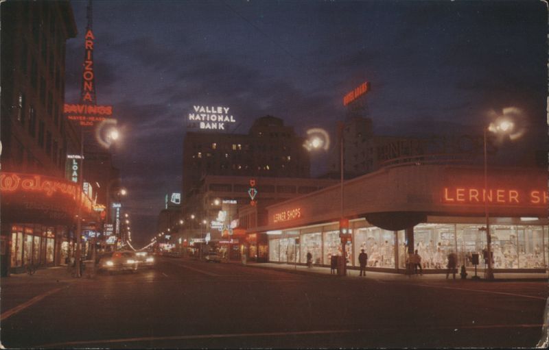 Phoenix Central Avenue Night View, Neon Signs, Valley Bank