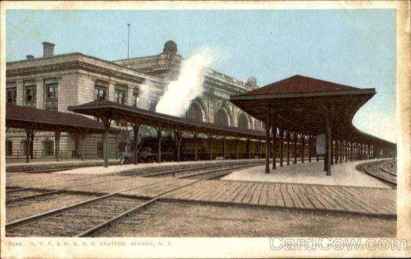 Front: 8510. N. Y. C. & H. R. R. R. STATION, ALBANY, N. Y. COPYRIGHT, 1904, BY DETROIT PHOTOGRAPHIC CO., Back: AND CANADA, FOREIGN, Two CENTS. THIS SIDE FOR THE ADDRESS