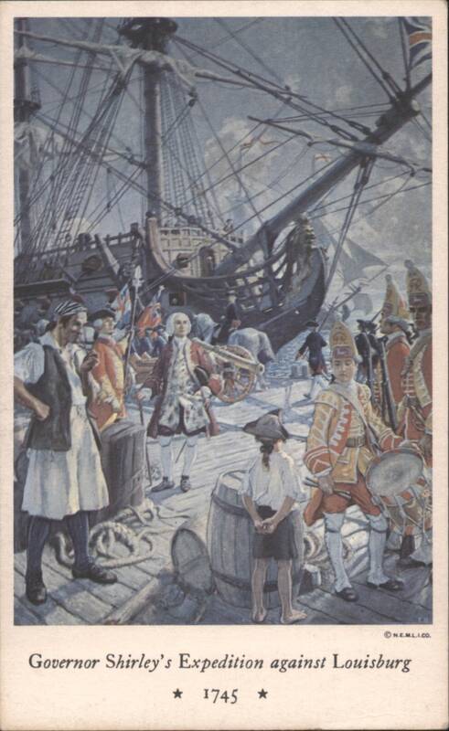 A miniature reproduction of a wall-mural depicting highlights from New England's colonial history. The scene shows Paul Revere on horseback at night, pointing and shouting to alert colonists outside a home. The original mural was on view in the main lobby of the New England Life building in Copley Square, Boston. Frigate Constitution Launch Boston 1797, Charles Hoffbauer Mural Historical mural depicting the launch of the Frigate Constitution in Boston in 1797. The artwork is one of eight historical murals by Charles Hoffbauer, located in the home office building of New England Mutual Life Insurance Company at Copley Square. Governor Shirley's Expedition against Louisburg, 1745 Miniature of a wall-mural from the New England Life building in Copley Square, Boston, depicting a scene from New England's colonial history. Declaration of Independence Hailed in Boston 1776 Miniature of a wall-mural depicting highlights from New England's colonial history, on view in the main lobby of the New England Life building, Home Office of the first mutual life insurance company chartered in America (Copley Square, Boston). Tense 'Old South' Meeting Leads to Boston Tea Party 1773 Miniature of a wall-mural depicting highlights from New England's colonial history, on view in the main lobby of the New England Life building, Home Office of the first mutual life insurance company chartered in America. Samoset Bids the Pilgrims Welcome at Plymouth 1621 Miniature of one of eight wall-murals depicting highlights from New England's colonial history, on view in the main lobby of the New England Life building, Home Office in Copley Square, Boston. Governor Winthrop Arrives at Salem on the Arbella, 1630 One of eight historical murals by Charles Hoffbauer, in the home office building of New England Mutual Life Insurance Company, Copley Square, Boston. |