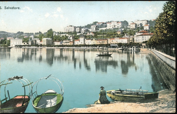 Lugano and Monte S. Salvatore, Lake View with Boats