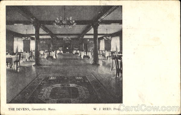 Front: THE DEVENS, Greenfield, Mass. W. J REED, Prop. Back: PRIVATE MAILING CARD Authorized by Act of Congress, May 19, 1898 3- L