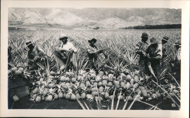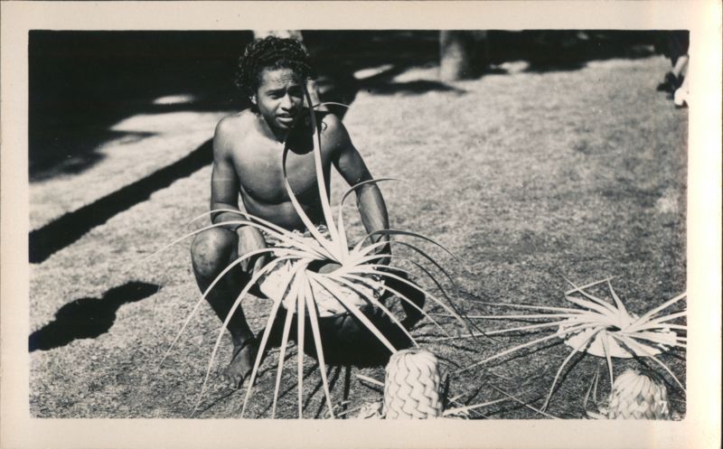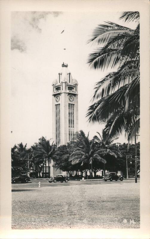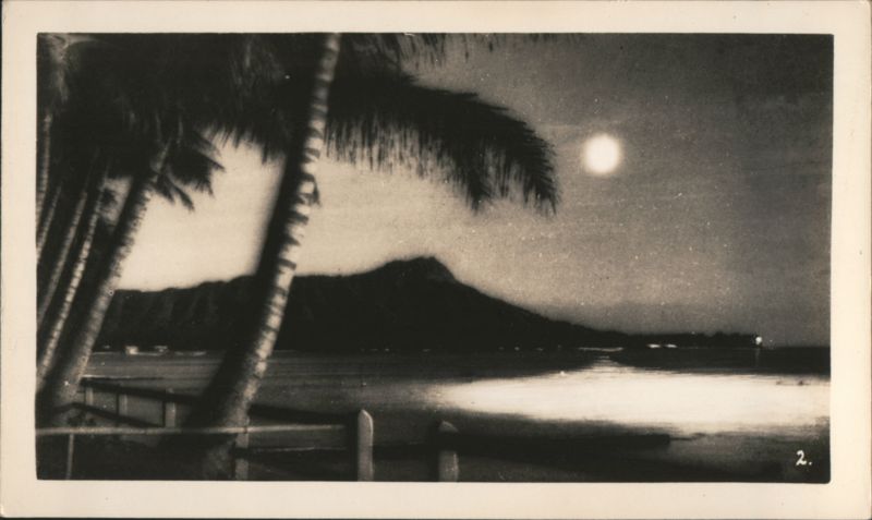 Collection of 14 scenes from the Hawaiian Islands including Street Scene in Honolulu, Waikiki Beach, Diamond Head in Moonlight, Moana Hotel, Royal Hawaiian Hotel, Waikiki Theatre, Native Weaving Mats, Plowing Rice, The Pali, Pineapple Field, Koli Palms, Aloha Tower, and Hula Hula.