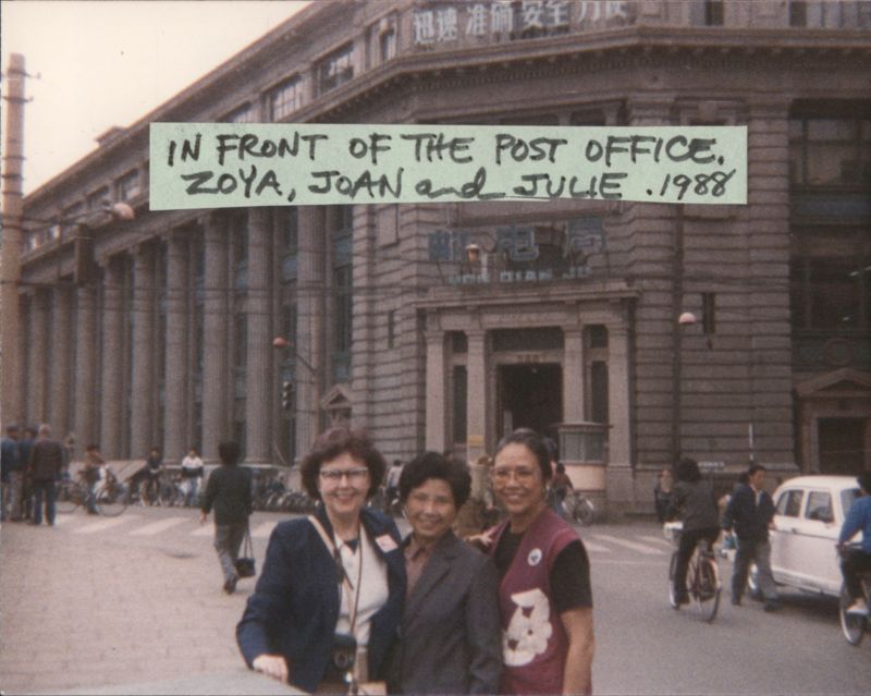 Zoya, Joan, Julie in front of Post Office, 1988