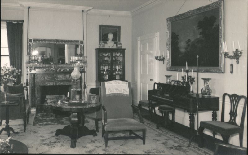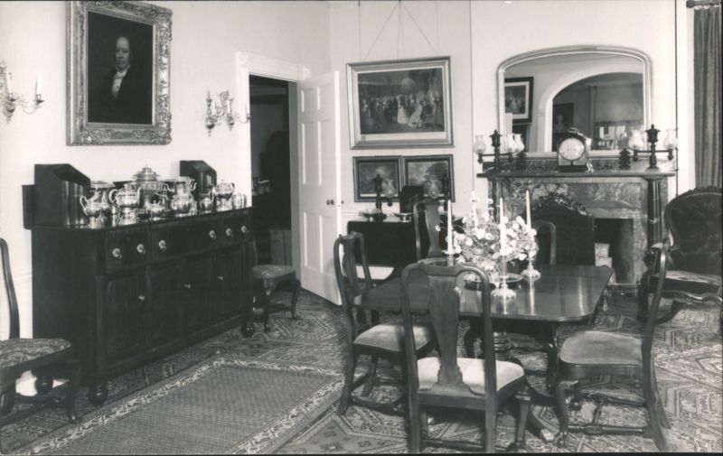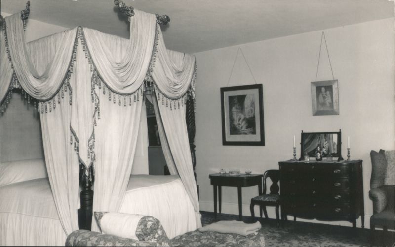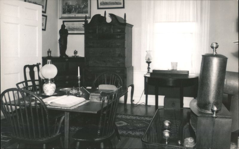 Colonel Black Homestead, The Black House, Ellsworth, ME Colonel Black Mansion Master Bed Room, Ellsworth, ME Drawing Room, Colonel Black Mansion, Ellsworth, Maine Colonel Black Mansion Dining Room Colonel Black Mansion Office Interior, Ellsworth, ME Colonel Black Mansion, The Library, Southwest Harbor, ME Interior view of a library featuring a fireplace, mantelpiece with clocks and decorative items, bookshelves, and a patterned rug. A table with a lamp and books is in the foreground. Colonel Black Mansion, The Blue Room, Southwest Harbor, ME Colonel Black Mansion, Master Bed Room Colonel Black Mansion, The Old Kitchen, Southwest Harbor, ME Colonel Black Mansion, Dutch Bed Chair Upholstered and tufted chair, identified as a 'Dutch Bed Chair. closed.' Colonel Black Mansion Dutch Bed Chair, opened Colonel Black Mansion Stair Hall, Ellsworth, ME Interior view of the grand curving staircase with a carpet runner, white balusters, and a dark wooden handrail. A large chandelier hangs above the staircase, and framed portraits adorn the wall. Ornate Mirror with Eagle, Colonel Black Mansion, Ellsworth, ME |