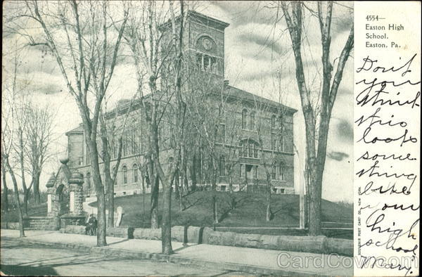 Front: 4554- Easton High School, Easton, Pa. Dorit Think shio ifico looks sonce. string like you. high jschool "Mary. Back: R, Post Cards Vol 3AM 06 AST EOC 430 GOLIN 1790 645 Willard. E. Freema али 92 Church St.. Montclair.