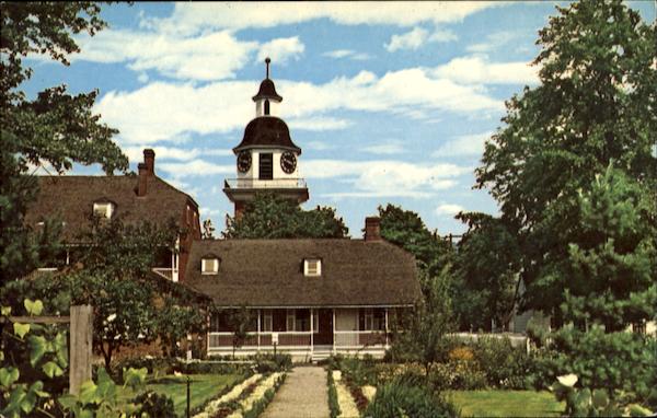 The Great House of Old Economy from the center of the Garden. Towering over the Great House, is the Church of the Harmony Society, 1828.