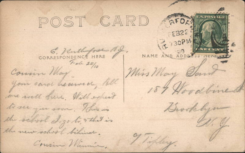 A view of a school building with a new school structure under construction in the background. The scene includes a wooden fence and a smaller building to the right.