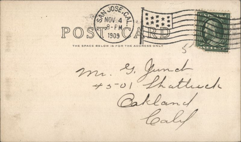 Advertising for Letcher's New Garage at 214-224 North First Street, San Jose, California. Features a portrait of a woman.