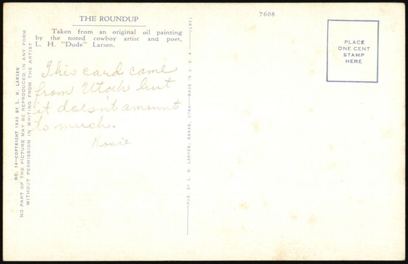 An illustration of a western cattle roundup scene featuring cowboys, horses, and a chuck wagon in a mountain landscape.