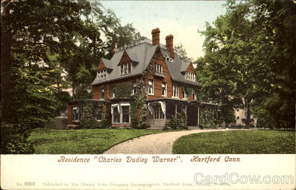 Front: Residence "Charles Dudley Warner". Hartford Conn. No. 5183 Published by The Chapin News Company (Incorporated), Hartford Conn., Leipzig, Dresden, Back: 44 300 THIS SIDE IS FOR THE ADDRESS ONLY.