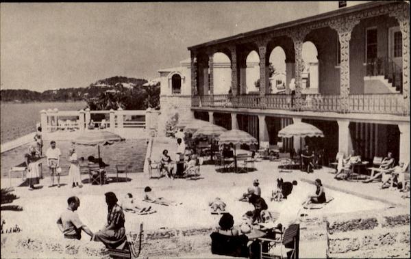 Princess Hotel AND COTTAGE HAMILTON BERMUDA THE SPARKLING SALT WATER POOL AND SAND BEACH-where sunning, swim- ming, a cocktail and lunch may be enjoyed. MY.C