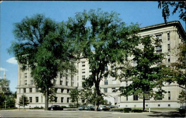 YORK NEWS CO., LANSING, MICHIGAN LANSING, MICHIGAN LEWIS CASS STATE OFFICE BUILDING CURTEICH COLOR R 3-D NATURAL COLOR REPRODUCTION (REG. U. S. A. PAT. OFF.) 8CK2374 PLACE