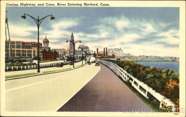 Front: Conlan Highway and Conn. River Entering Hartford, Conn. 78042 Back: PUB. BY H. P. KOPPLEMAN, PUB. AGENT C®