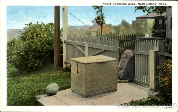 Front: AGNES SURRIAGE WELL, MARBLEHEAD, MASS. 123015 Back: PUBLISHED BY JOHN T. ADAMS, MARBLEHEAD, MASS. AMERICAN ART COLORED TE. SIC AG