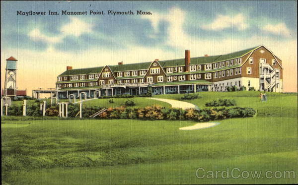 Front: Mayflower Inn. Manomet Point, Plymouth, Mass. U U WLYun田 山W Lu U LLUUU 4ODe Back: je "TICHNOR QUALITY VIEWS" REG. U. S. PAT. OFF. MADE ONLY BY TICH NOR BROS., INC., BOSTON, MASS. 76427 PUB, BY SMITH NEWS STORE, PLYMOUTH, MASS.