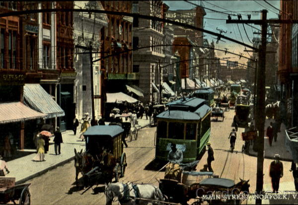 One of Norfolk's busy thoroughfares in the heart of the business section
